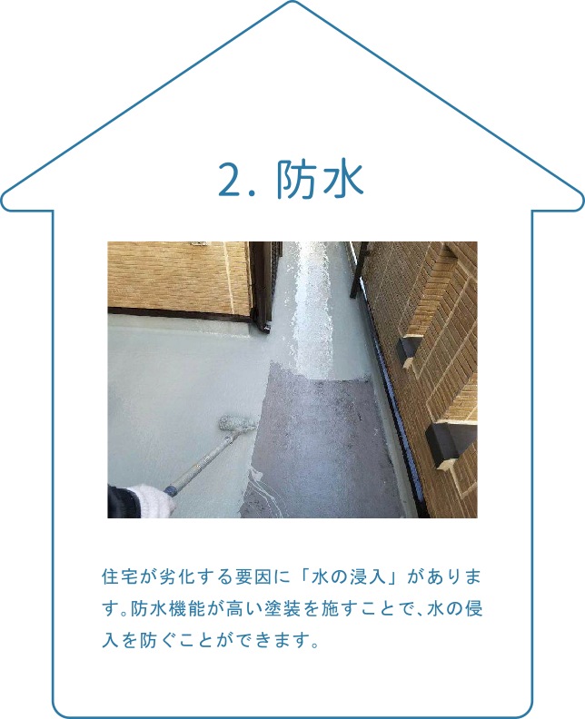 | 事業内容 | ▶外壁塗装 ▶防水工事 ▶雨漏診断 ▶増築工事 ▶改修工事 |